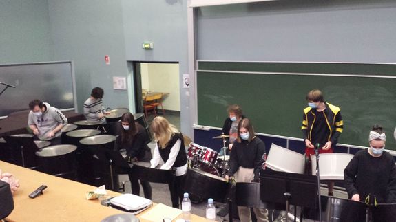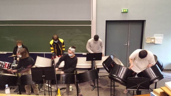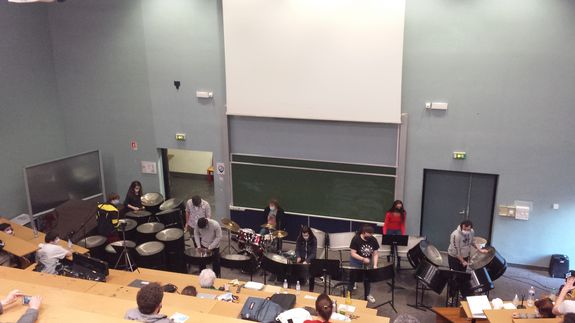 Quelques aperçus de la prestation musicale du Steelband mené par Benoît Collin, en conclusion du colloque des 22 et 23 mars 2021.