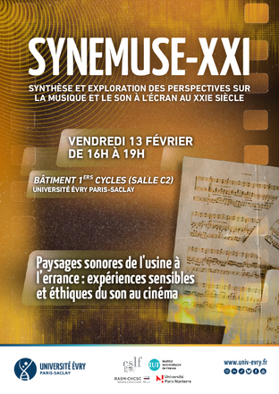 SYNEMUSE-XXI est un nouveau séminaire de recherche international porté par Chloé Huvet (Université Évry Paris-Saclay, RASM-CHCSC/IUF) et Aurélie Huz (Université Paris Nanterre, CSLF), avec le soutien de l’Institut Universitaire de France. Ce séminaire pluridisciplinaire réunit des spécialistes du son et de la musique à l’écran développant des approches novatrices de la musique et du son dans les médias audiovisuels anglophones contemporains (cinéma, télévision, jeux vidéo, etc.). Il s’agit à la fois de réfléchir collectivement aux différentes manières d’appréhender et d’analyser les bandes-son des productions audiovisuelles à l’ère numérique, notamment par des propositions terminologiques et méthodologiques stimulantes, mais aussi d’examiner les transformations des processus créateurs, des démarches esthétiques et de questionner l’expérience spectatorielle qui en découle. Le séminaire ambitionne de couvrir un large éventail de sujets, de corpus et d’approches. Il vise en outre à impulser la constitution d’un réseau international et multidisciplinaire, et à renforcer les collaborations existantes avec les spécialistes invités.